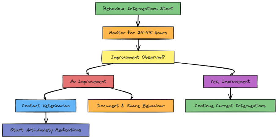 Dr. van Haaften recommended giving non-pharmaceutical behavioral interventions a window of 24 to 48 hours to prove their efficacy. If the animal does not show measurable improvement, either in body language or behavior, it may be time to consider medication.