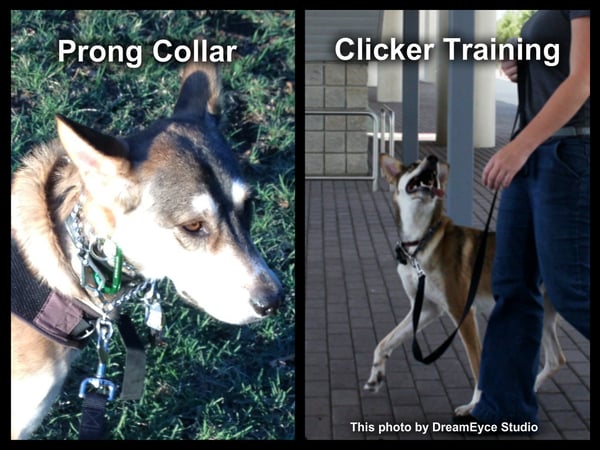 By Diane Garrod A prong collar has a pair of prongs approximately every inch. The prongs are made of wire, approximately 3⁄32 inches in diameter. Still ignoring the drawstring effect – each prong contacts the neck with an area of only about 7⁄1000 inches2. So 20 prongs, 80 pounds, generate about 579 psi at each prong tip, assuming they are blunt, not pointed. If the prongs are located over the larynx it is hard to imagine injury (at least bruising) NOT occurring. This pressure will easily collapse any blood vessel… Continued