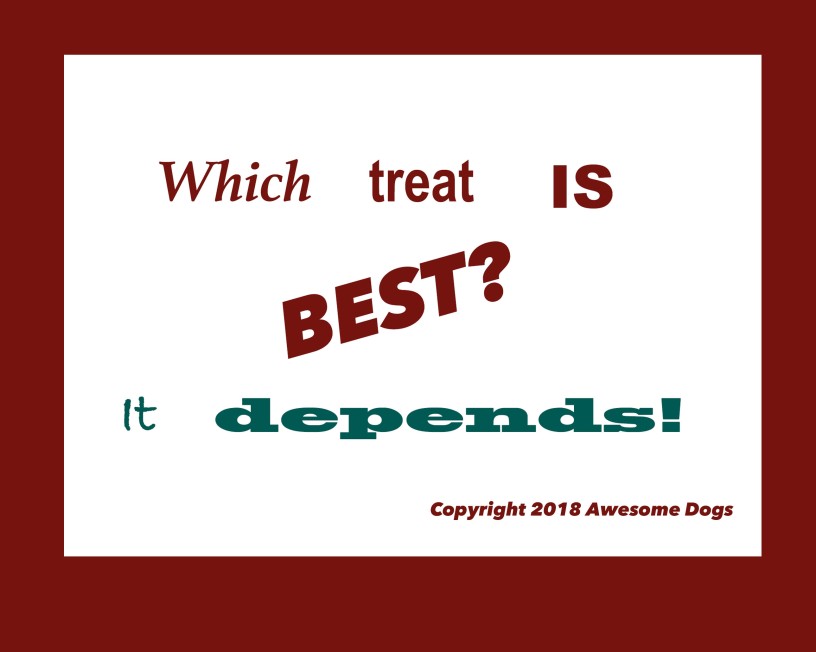 Which Treat Value Is BEST? It depends. There’s so much variation in how food reinforcements are used that we have to look at the objective of the training.